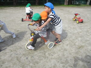 異年齢保育をしています 2・3・4・5歳児は兄弟姉妹のような関わりを大切にできるように、生活全般を一緒にすごします。 お泊まり保育や卒園準備など5歳児ならではの取り組みは年齢別で過ごします。 同年齢でも、年齢が違っても、仲良しの友だちがたくさん♪どこへ出かけても一緒がうれしい☆ 年齢が違うからこそ、お互いの気持ちを思いやる心が育っていきます🌱